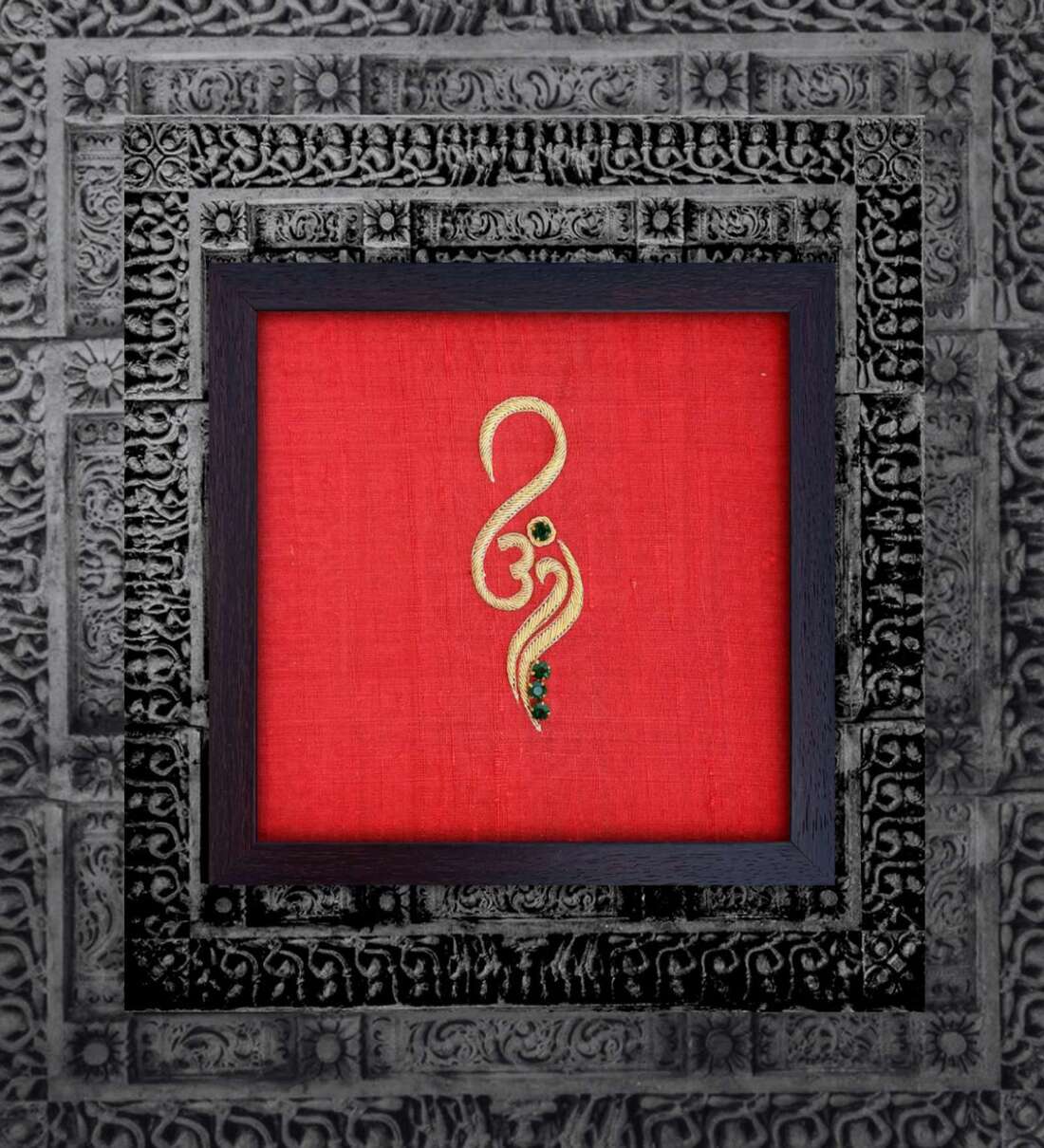 Red Handcrafted Om Gold-Plated Jardoshi Embroidery Wall Art