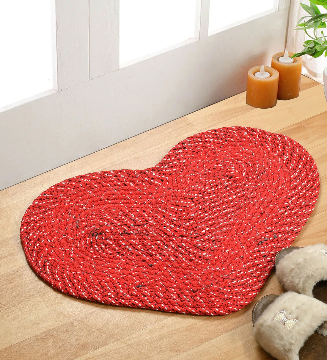 Red Heart Shaped Polypropylene Max Absorbent 16X24 Inches Bath Mat