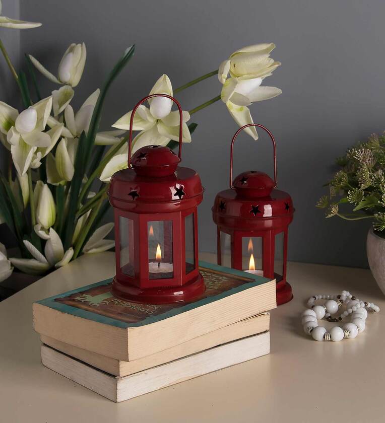 Red Metal (Set Of 2) Hanging Tea Light Holders