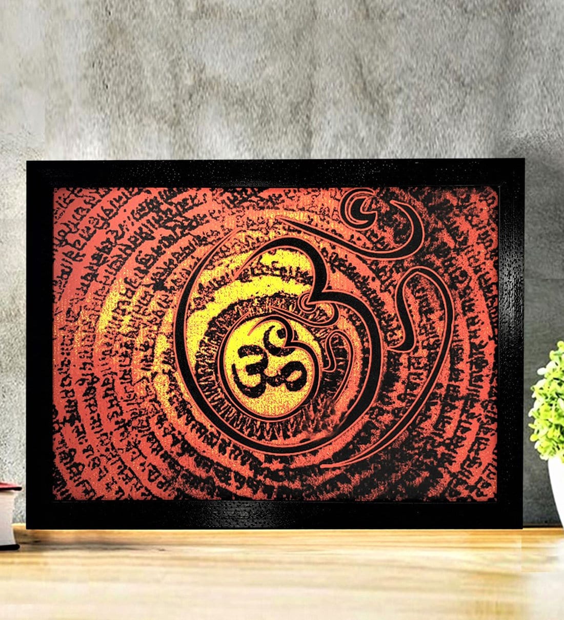 Red "Om Mantra" Textured Paper Scratch/Dust Proof Framed Art Print