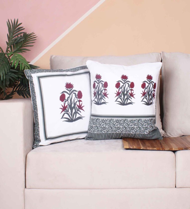 Red Polycotton Floral 24x24 inches Cushion Covers (Pack of 2)