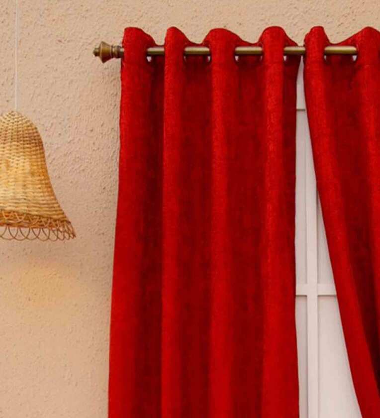 Red Solid Polyester 9 Ft Blackout Eyelet Door Curtain