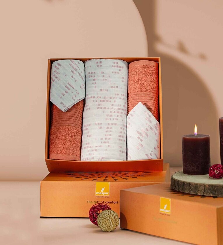 5Pc Bed Bath Set : {1 Bed Sheet (275X275 cm) + 2 Pillow Covers (45X68 cm) +2 Bath Towels (75X150 cm) +1 Box (34.5X34.5X10.5 cm)}
