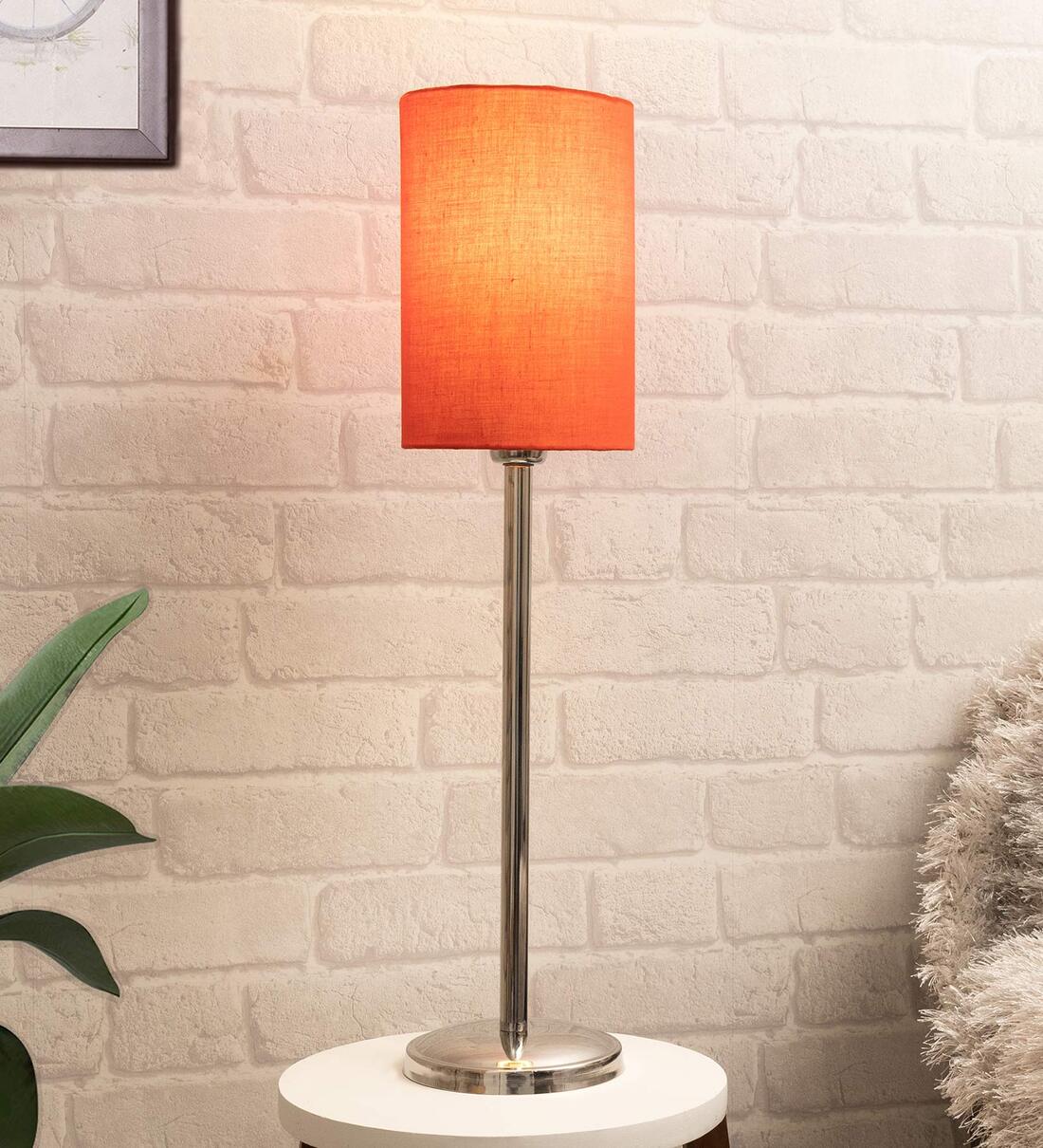 Red Shade Table Lamp With Stainless Steel Base