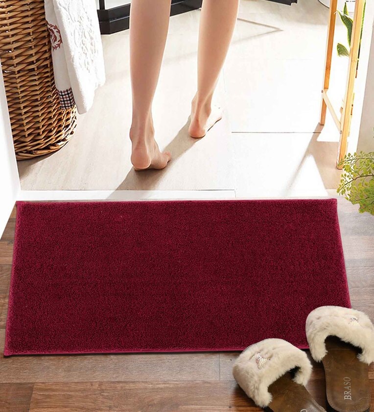 Red Solid MicroFibre 14x10 Inches Antiskid Bath Mats