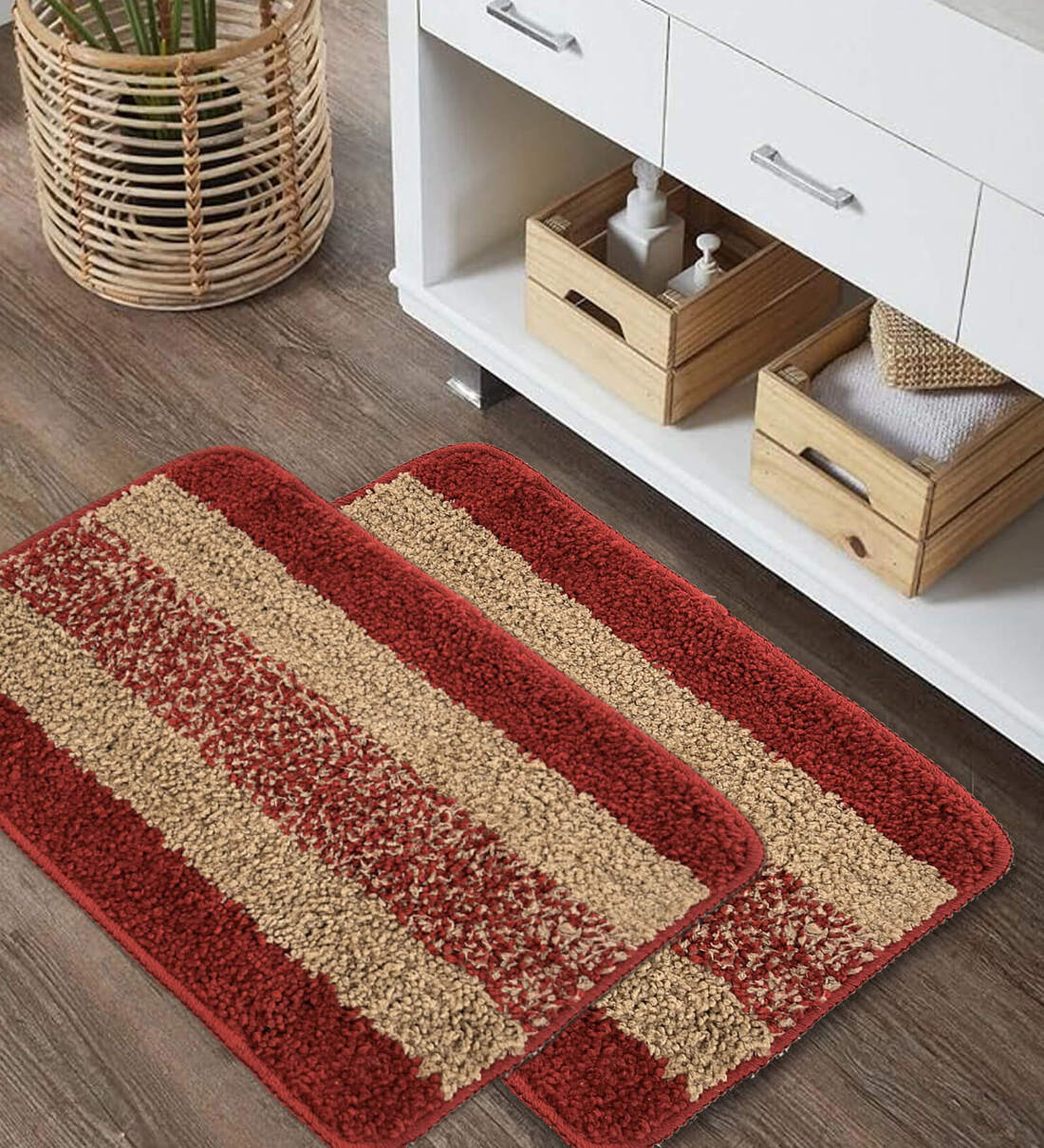 Red Stripe Microfibre 14x20 Inches AntiSkid Door Mats (Pack of 2)