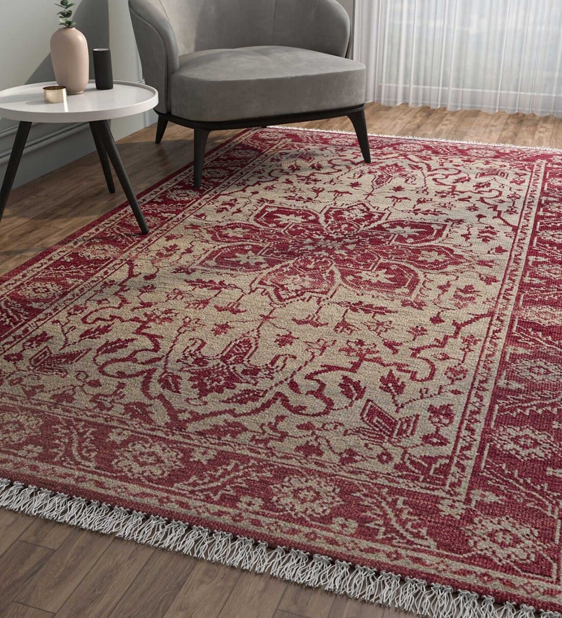 Red Traditional Wool 6 ft x 9 ft Hand Knotted Carpet
