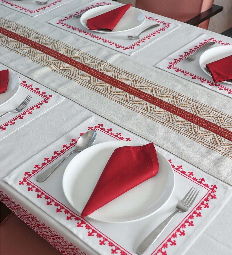 Elevate your everyday dining experience with our 13x19 inch Cotton Blended Placemats and 16x16 inch Napkins in classic white and vibrant red. Crafted from high-quality fabric, they are both durable and stylish. The charming floral print along the borders adds a touch of elegance to your table setting. These essentials are thoughtfully designed for your daily meals, making every dining experience feel special. Transform your table with the perfect blend of functionality and aesthetic appeal.