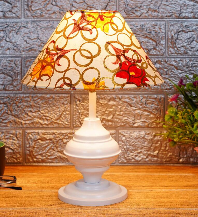 Red & Yellow Shade Table Lamp With Metal Base
