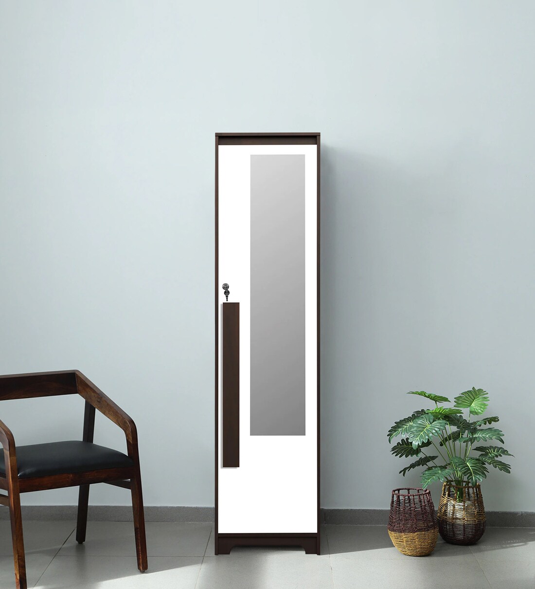 Regal Grand 1 Door Wardrobe in Walnut & White Finish with Mirror