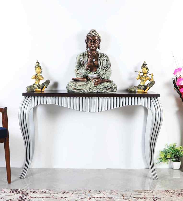 The Regat Console Table's mix of smooth brown top and silver legs adds an elegant touch to any area. It has a modern design that works well in different interior spaces such as living rooms and foyers. The table is both stylish and useful as it provides a sturdy surface for holding items like lamps vases framed pictures and other decorative pieces you want to display. The uniquely designed silver legs give visual interest without dominating the space. The brown top of the table gives a balanced aesthetic that works well in both traditional and modern spaces while also balancing the silver legs. Its solid construction guarantees long-term durability and its simple design makes it easy to clean and maintain. Whether you want an attention-grabbing piece for your hallway or need more space for décor, the Regat Console Table offers both beauty and usefulness at once. This versatile console table is a useful yet fashionable addition to your space that may improve the appearance of any area.