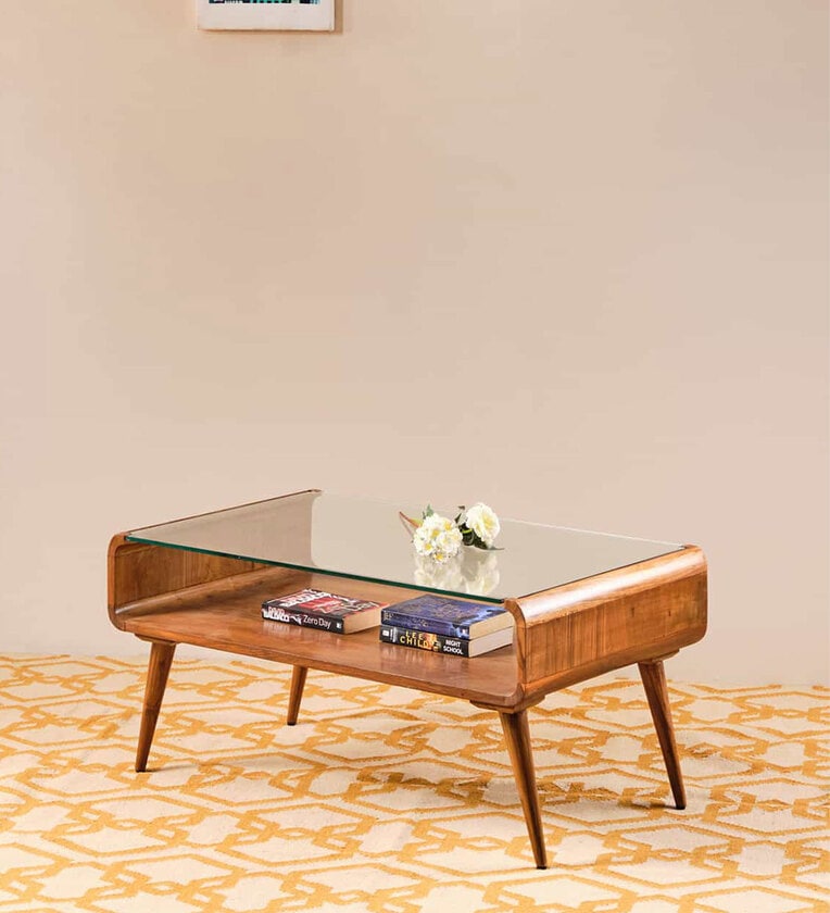 Quintessentially midcentury with a millennial update! Beautifully contoured and shaped to hold a perfectly fitted plane of glass. Lightly polished to show off the grain of the teak wood, the coffee table complements modern rooms with an ageless crafted warmth