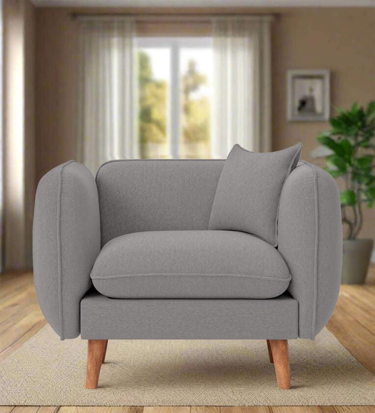 Reva Fabric 1 Seater Sofa in Silver Grey Colour