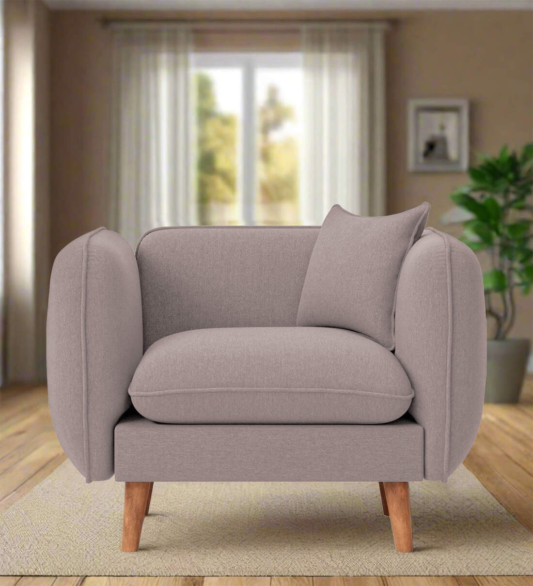 Reva Fabric 1 Seater Sofa in Almond Beige Colour
