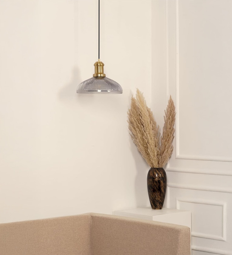 HEIGHT: WIRE LENGTH IS ADJUSTABLE UPTO 1MTR(100 CM) Enhance the interiors of your space with this timeless & elegant Hanging Light. The lamp gives a stylish look to your space while adding a touch of grandeur. This lamp provides sufficient lighting to brighten the corners of your room and delivers diffused illumination which sets the ambience and the mood of your space. It is made in our factory in India. Great With Modern Home Decor: This hanging lamp helps to brighten up the room and has a contemporary design that matches perfectly with the furniture. Features: Can easily blend in indoor spaces like living room, bedroom, side table, lobby area, dinning table, bar area & kitchen, and outdoor spaces like balconies, terrace, patios and outdoor walls. This lamp comes with a Metal Base, Sturdy Frame, Strong Glass and Elegant Finish. Unrivalled Quality - We follow precise quality control measures to ensure that the product(s) you receive are of the highest quality. In the rarest cases that you receive a damaged/ defective product, please reach out to us and let us resolve your issue to the best of our capabilities. Recommended Uses - This lamp is an ideal decor piece for indoor areas like bedroom, living room, dinning room, lobbies, side table, bar and kitchen; and outdoor spaces like patios, outdoor walls, terrace and balconies. It is also an excellent buy for offices, restaurants, cafes, hotels and showrooms.