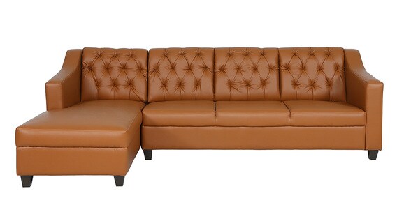 Riosche Leatherette RHS Sectional Sofa (3+ Lounger)in Tan Colour