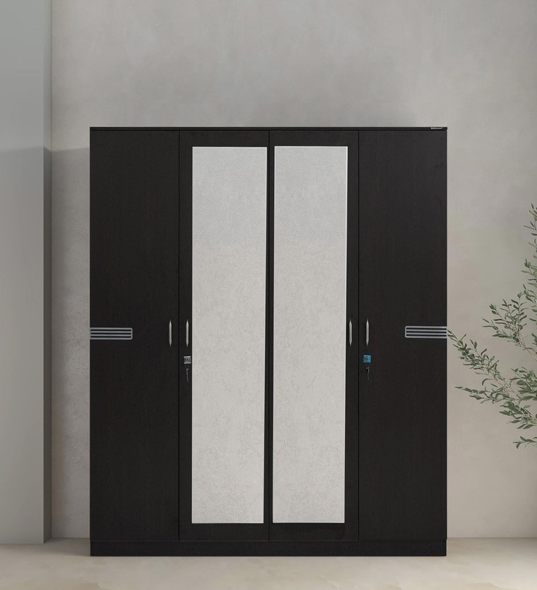 Riva 4 Door Wardrobe In New Wenge Finish With Mirror With Drawer