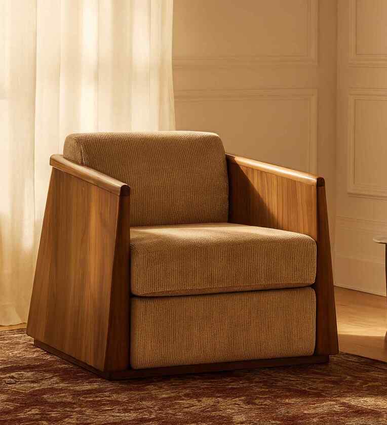 The Roko Lounge Chair is a statement in architectural comfort. Its blocky silhouette and wooden arm panels frame a soft upholstered seat, creating a perfect balance between strength and warmth. With its compact footprint and striking form, it s a modern lounge chair that anchors any space with quiet authority.