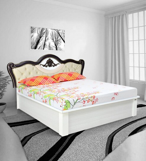 - Bed made of 15mm thick MDF. Decorative Headboard has cushion with PVC upholstery. Bed has hydraulic storage on footboard side and top lifting box storage in the balance towards headboard.