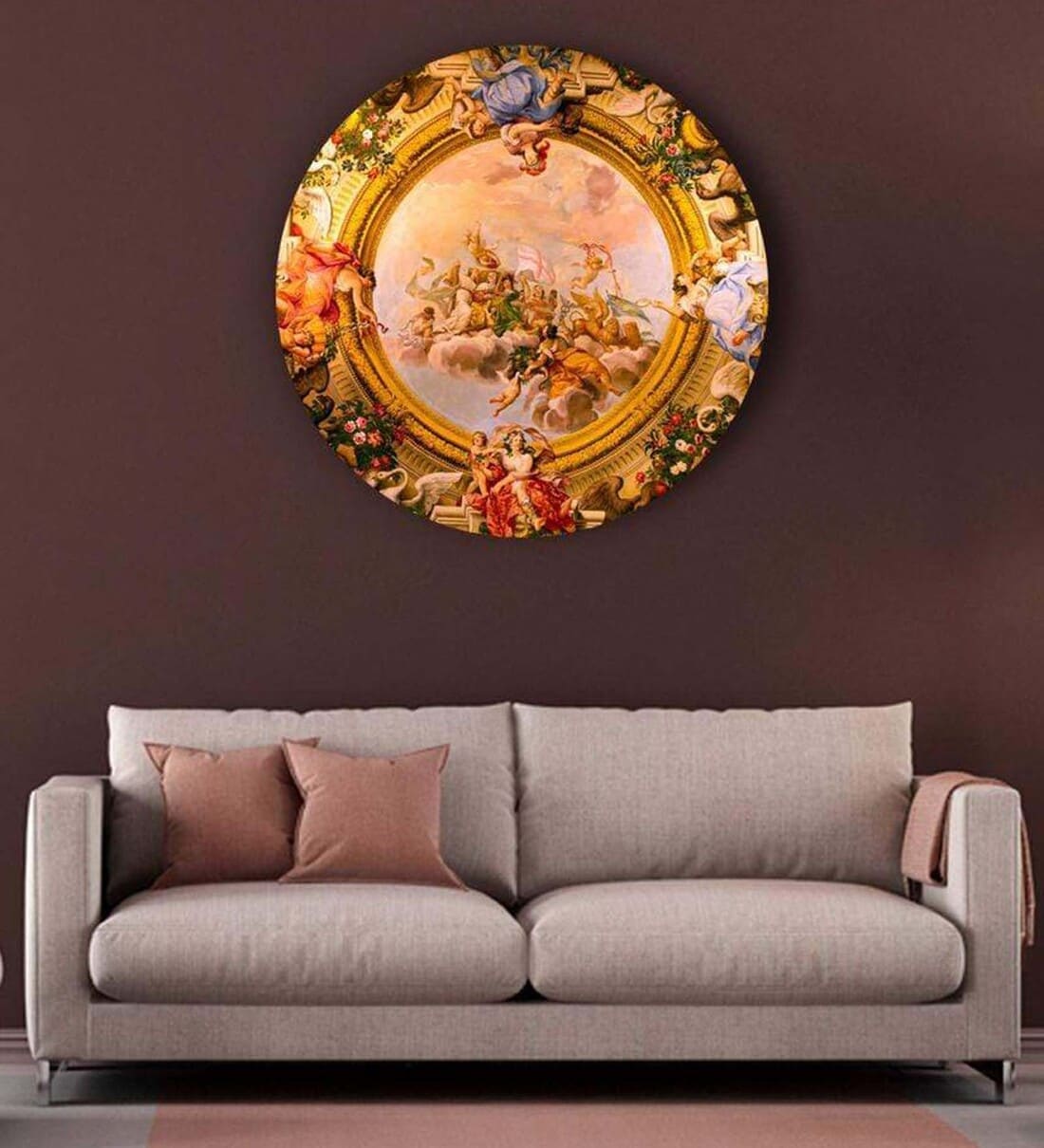 A Piece of Wonder of the World in Your Home! The Palazzo Pepoli Detailed Ceiling Canvas is a gorgeous piece of digitally printed canvas that is going to leave everyone pleasantly amazed. The original artwork adorns the ceiling of Palazzo Pepoli in Emilia-Romagna, Italy. Having a replica of the art created during the Renaissance period is a big deal! Palazzo Pepoli Detailed Ceiling Canvas The canvas paints a beautiful picture of the original ceiling fresco. Created by Giuseppe Maria Rolli, an Italian painter and engineer, the original ceiling resembles the Baroque period of art and architecture, right before Renaissance. It can be identified the drama, extravagant ornamentation, bold colors, etc. Wonders of Renaissance Canvas If you want to purchase a set of canvases to create a cohesive look, opt for the Wonders of Renaissance Canvas! This set of two canvases will bring together your decor wonderfully! The second canvas of this gorgeous set is the replica of the fresco "The Triumph of Virtue and Intelligence on Error" by Giovanni Battista Tiepolo, inside villa Cordellina Lombardi in Vicenzaof. Check out Giovanni Battista's Triumph Canvas too! ABOUT the ART The rebirth of European art, culture, politics, and economics happened during the famous Renaissance period. It is said that the period occurred between the 14th and 17th centuries and promoted the rediscovery of classical philosophy, literature, and art. The art form was based on intellectual discipline. The few characteristics that one can use to identify Renaissance are by looking for fresco cycles, the composition of figures, creation of altarpieces, use of light and shadow, creating with a linear perspective, and realism. Renaissance changed the world of art, architecture, music, and literature as we know it today. SPECIFICATIONS Dimensions: Small- 30cm, Medium- 40cm, Large- 50cm Material: Canvas Technique: Digital Printing Sold with Wooden Frame with Gold Ring Frame Matte Finish Available as Single and Set of Two Canvases FEATURES Clean design and elegant look High quality Durable Art Work Handle with Care Note: The color of the actual product may slightly vary from the images shown as the images are shot in different lighting. GIFT BOX CONTAINS The Gift Box that the Artment sends consists of Palazzo Pepoli Detailed Ceiling Canvas and Giovanni Battista's Triumph Canvas with a triple layering of bubble wrap and safely packed in a box. STYLING TIPS Palazzo Pepoli Detailed Ceiling Canvas is a beautiful addition to your Art Deco or Modern style home or office decor It will go well with a subtle grey and white decor or for a bold look can be paired with darker backdrops Display the wall art on a plain wall to enhance the look of the space When paired with gold elements, the wall art shall become an eye-catching element of the decor The wall art is a perfect piece for your foyer arranged with wooden and natural accents Buy the entire set to elevate the look of your home decor or cafes and restaurants