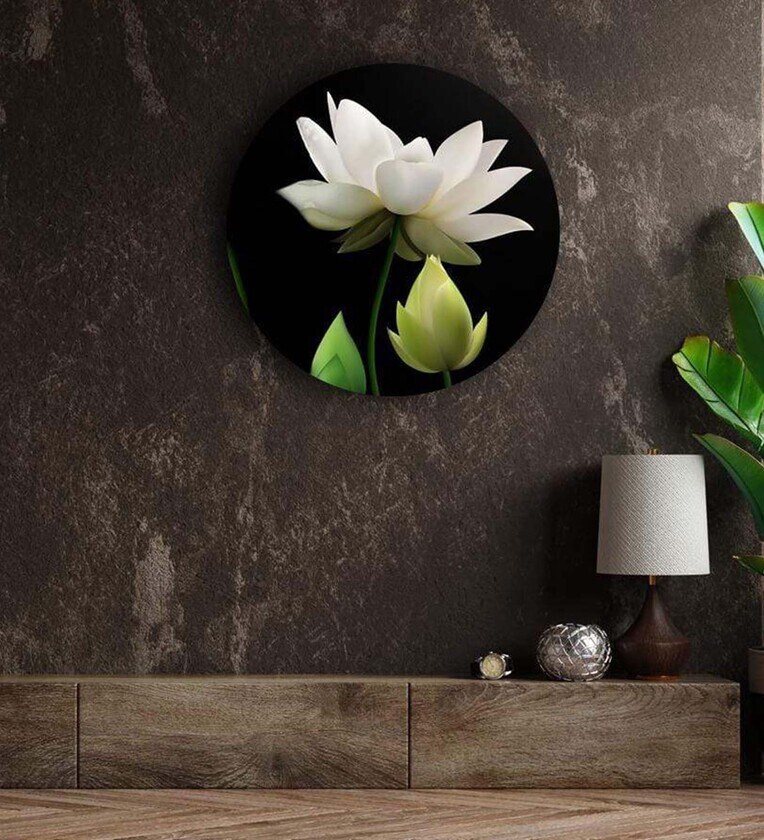 Round Multicolour Gracefully White Lotus Canvas Art Print