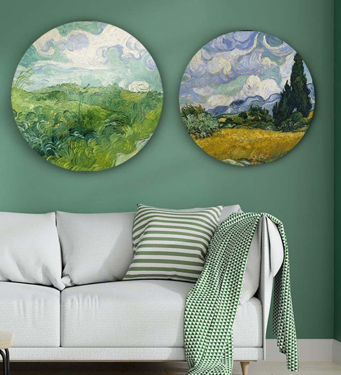 A Hint of Impressionism in Your Home! The Wonders of Van Gogh Canvas is a set of two canvases that are digitally printed replicas of Van Gogh's two well-known paintings. One of the artworks is known as Wheat Field with Cypresses that Van Gogh painted in 1889. The second digital print's original work is known as Green Wheat Fields created in 1890. Wonders of Van Gogh Canvas While Wheat Field with Cypresses was his initial study of nature, Green Wheat Fields was painted in Auvers during his last days in the village. Both of these artworks can be clearly identified to be the replica of Van Gogh's originals. The set of these digitally printed canvases will bring into your space a superb post-impressionist vibe. ABOUT the ART Impressionism is the 19th-century art movement that is now known for its vast collection of oil paintings. The identification of these paintings can be done by observing small and thin brush strokes. Generally, Impressionist paintings had an open composition and depicted light in an accurate manner. It was developed by French artists. The famous Impressionist artists of this period, such as Claude Monet and Edgar Degas broke the conventional rules of art and captured light and movement in their own unconventional manner. This movement changed the course of art history. SPECIFICATIONS Dimensions: Small- 30cm, Large- 40cm Material: Canvas Technique: Digital Printing Sold with Wooden Frame with Gold Ring Frame Matte Finish FEATURES Clean design and elegant look High quality Durable Art Work Handle with Care Note: The color of the actual product may slightly vary from the images shown as the images are shot in different lighting. GIFT BOX CONTAINS The Gift Box that the Artment sends consists of Wonders of Van Gogh Canvas with a triple layering of bubble wrap and safely packed in a box. STYLING TIPS The Wonders of Van Gogh Canvas is going to be a beautiful addition to your space It will go well with light-colored backdrops so that Van Gogh's art can shine Display the wall art on a plain wall with earthy tones to enhance the look of the space When paired with gold elements, the wall art shall become an eye-catching element of the decor The wall art is a perfect piece for your foyer arranged with wooden and natural accents The Wonders of Van Gogh Canvas shall light up the decor of your living room and impress everyone!
