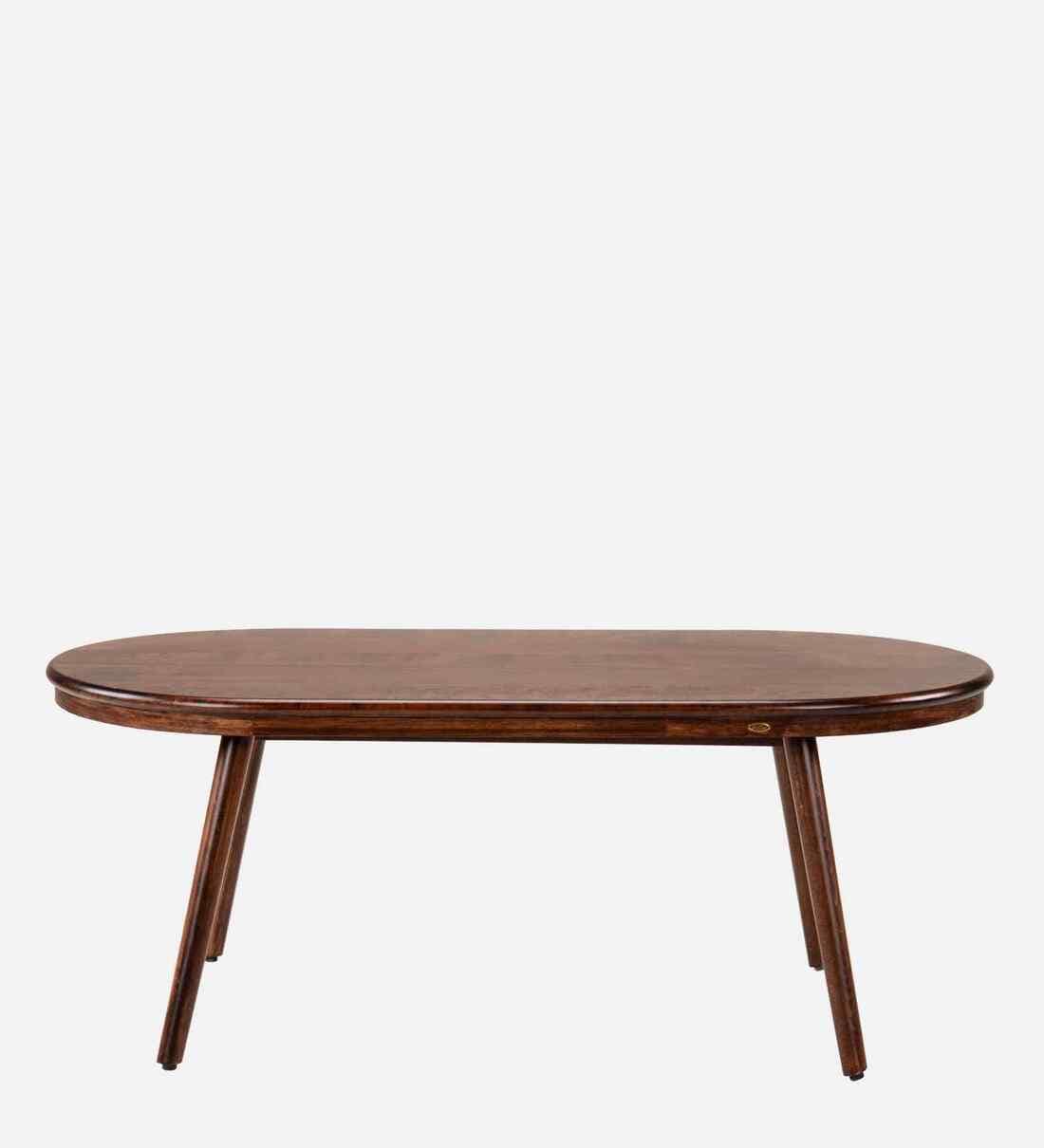 - The 22mm thick oval-shaped tabletop features softly rounded edges.