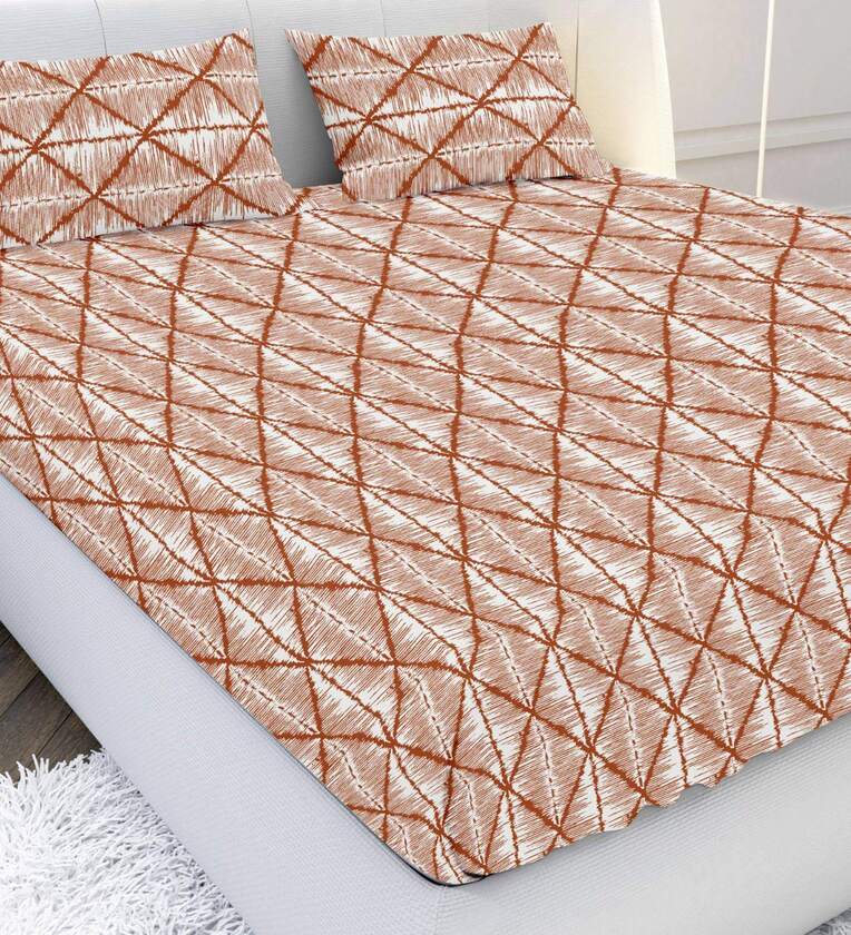 Rust Geometric 144 TC Cotton King Bedsheet with 2 Pillow Covers