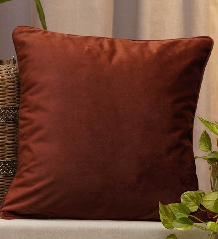 Less is more. Our Rust Solid Cushion Cover gives an incredibly soft and rich feel. The glamour and sheen of this velvet, makes the cushion cover ideal for any space. Rust color cover along with minimal styling with cord piping adds warmth to your dcor.