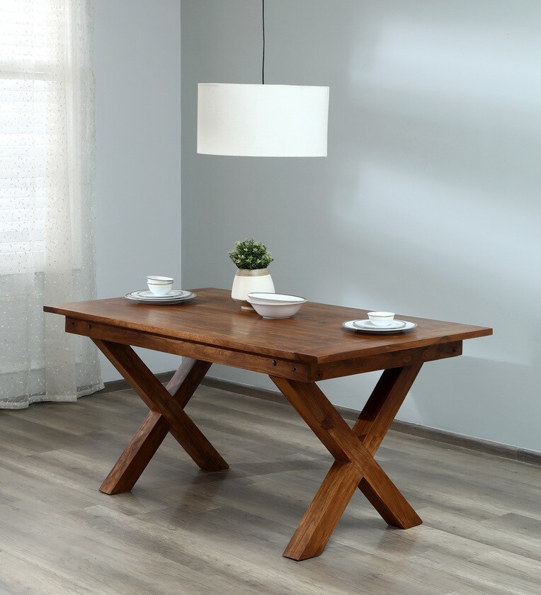 Rustic Solid Wood 6 Seater Dining Table in Brown Finish