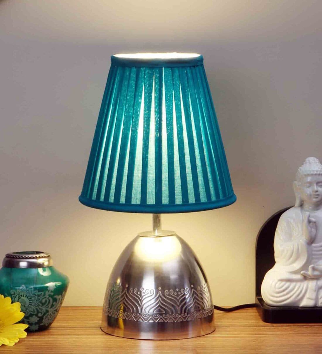 Ryan Teal Cotton Fabric Shade Night Lamp With Iron Base