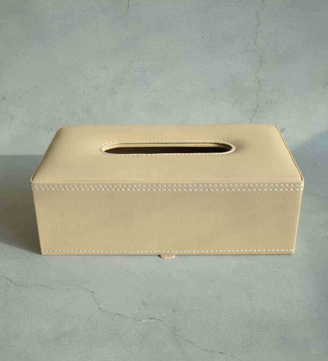 Sand Beige Rectangular PU Leather Tissue Box Cover Sleek Tabletop Napkin Dispenser