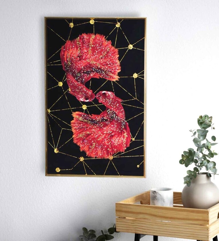 Scarlet Fish Wall Frame MDF PS Outer Frame Crystal Accents