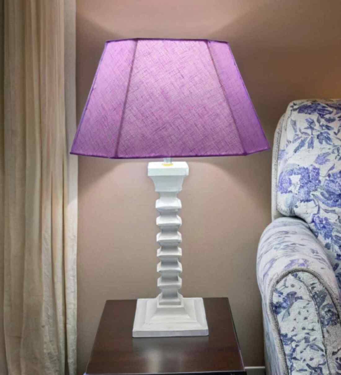 Sculpted Wooden Table Lamp with Cotton Linen Lavender Shade
