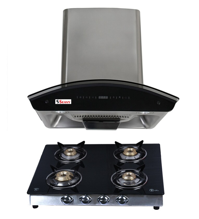 Seavy 60 CM Auto Clean Chimney with 4 Burner Gas Stove (Model: Prime 60