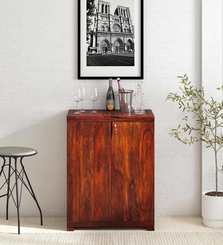 Segur Sheesham Wood Bar Cabinet In Honey Oak Finish