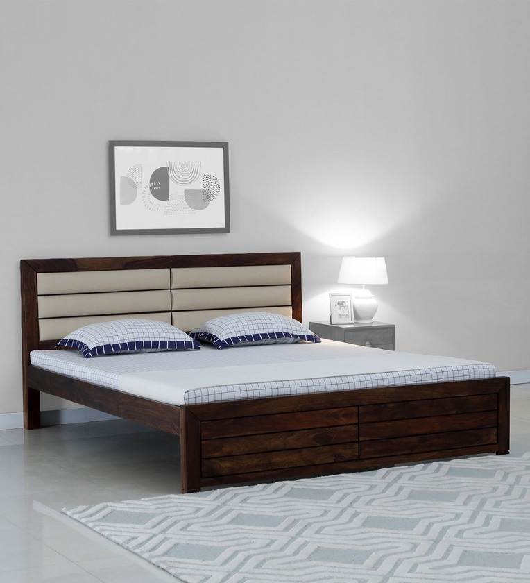 Segur Sheesham Wood Queen Size Bed In Provincial Teak Finish with Padded Headboard