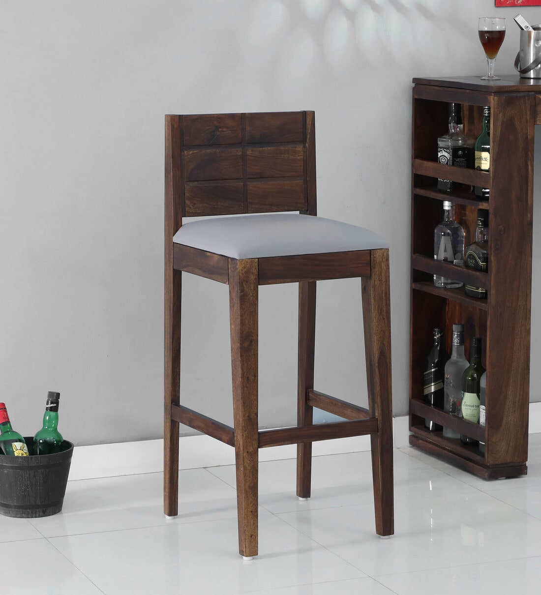 Segur Sheesham Wood Bar Stool in Provincial Teak Finish