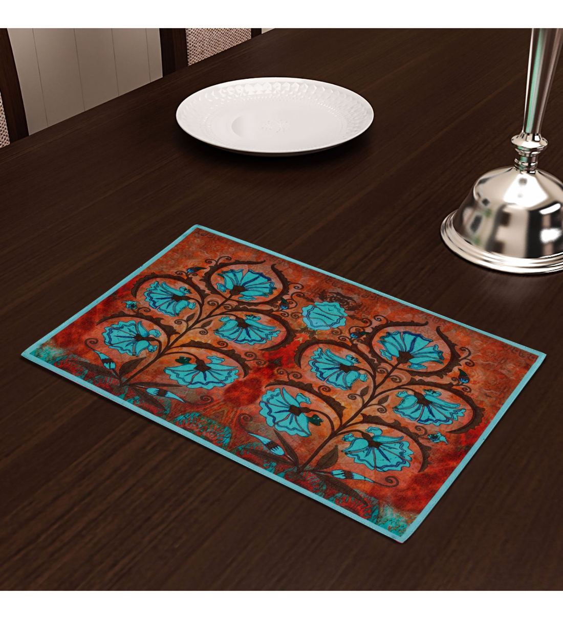 Floral Prined Brown Cotton 18x12 Inches Placemats (Set of 4)