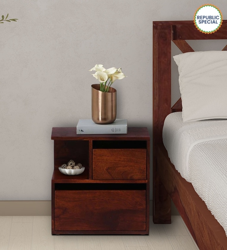 Sencillo Z Solid Wood Lhs Bedside Table In Honey Oak Finish With Drawers