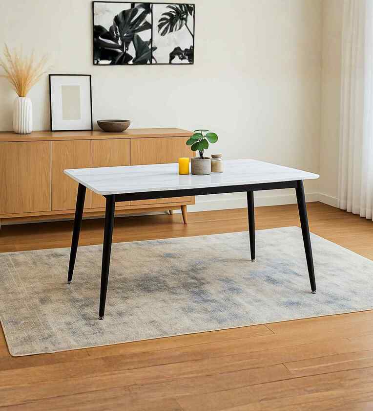 Sepang Malaysian Sintered Top 4 Seater Dining Table In White Finish