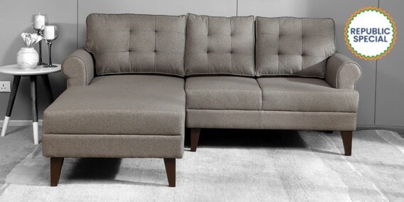 Serena Fabric RHS Sectional Sofa (2 + Lounger) in Sandy Brown Colour