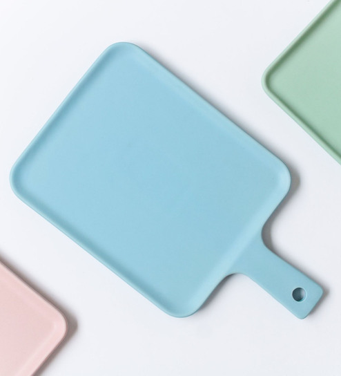 Platter plates with handle that come in 4 pastel shades to brighten up a serving. The ceramic plates can be used as a serving board to serve a cheese board, charcuterie, kebab platter or some snacks. The stylish serving platters are great for serving as well as plating.