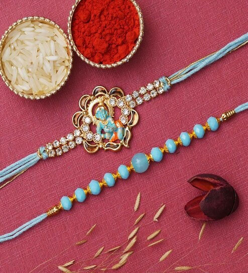 Set of 2 Designer Rakhi & Roli Chawal Pack