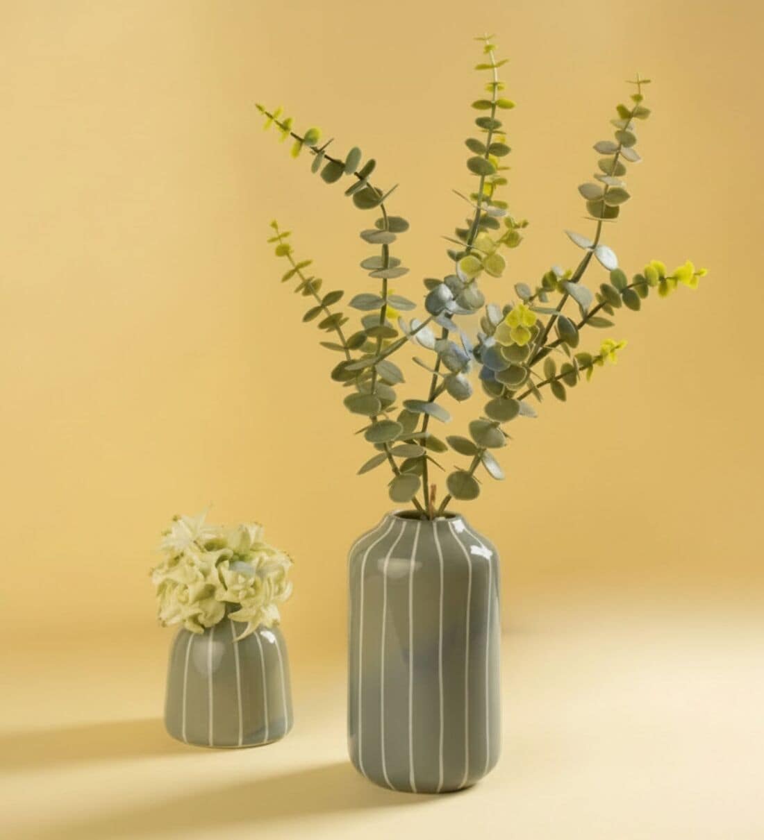Elevate your greenery with this elegant ceramic planter pair, featuring minimalist vertical line patterns in soothing earthy tones. Handcrafted by skilled artisans, these planters are perfect for succulents, small indoor plants, or simply as decorative accents. Their clean, modern design makes them a versatile addition to any room bringing a calm and sophisticated vibe to your space.