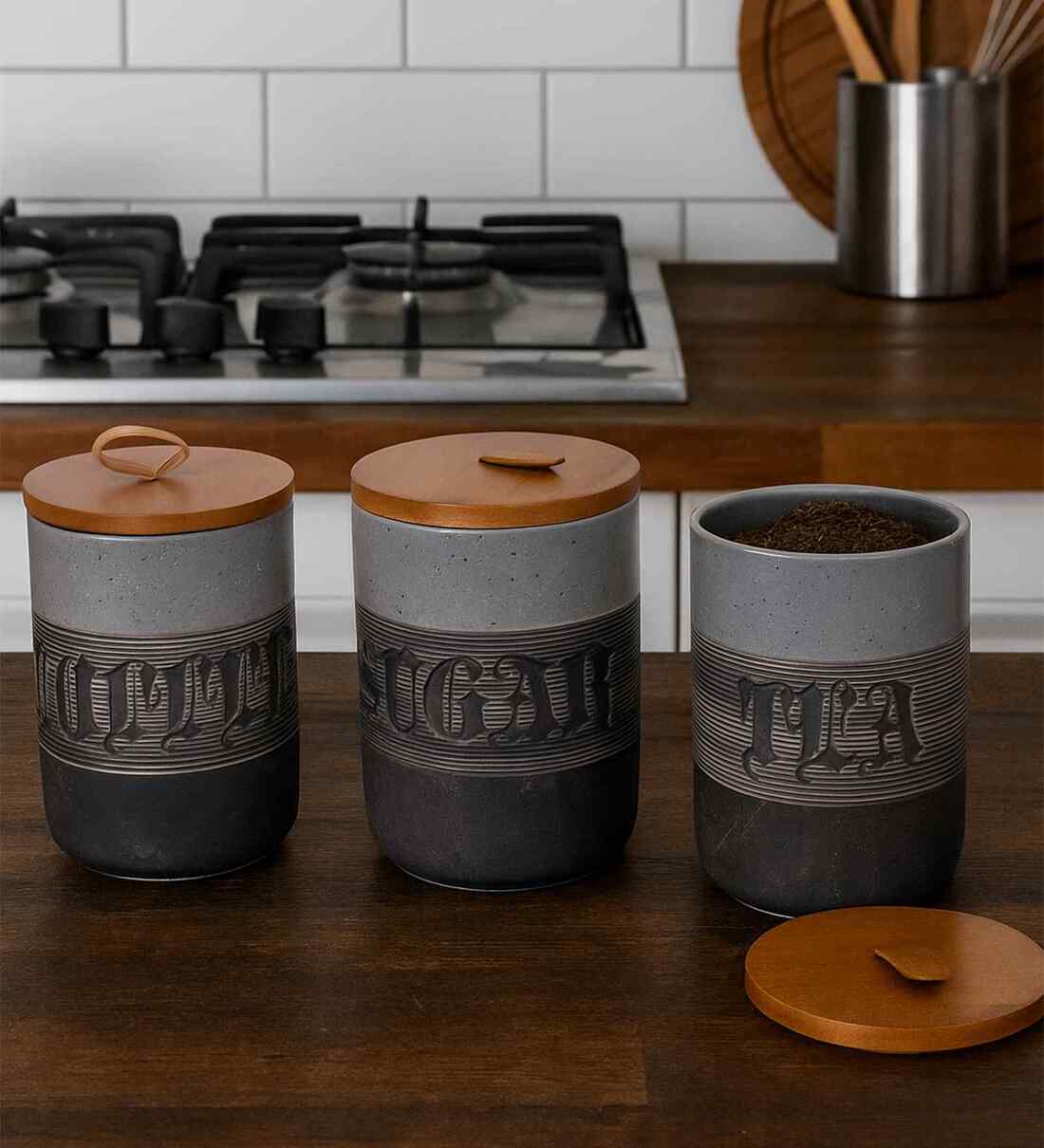 Set of 3 Daily Brew Luxe Ceramic and Wooden Jar Containers