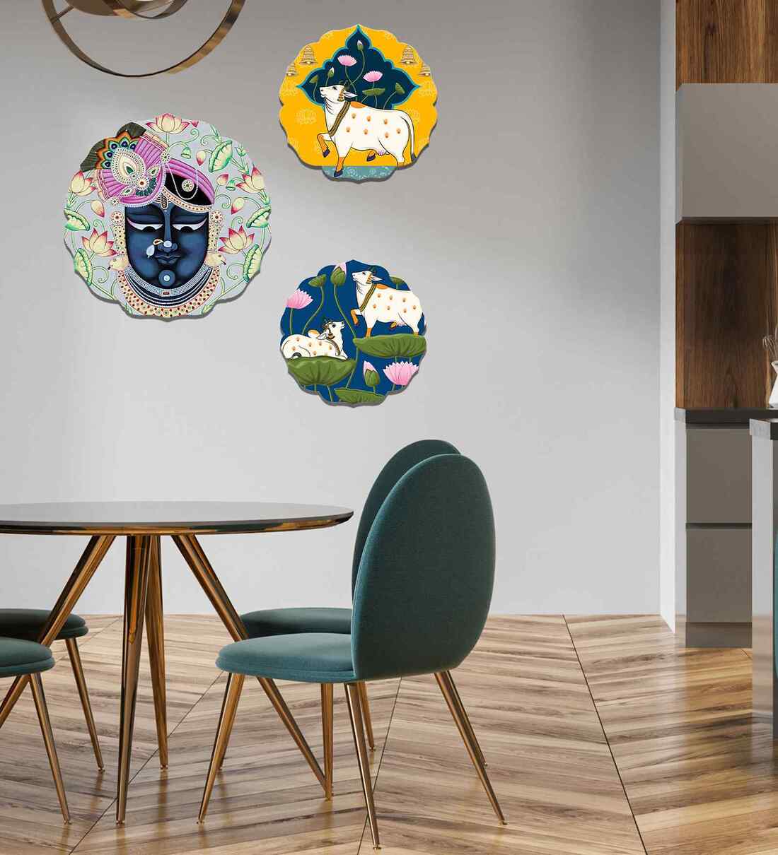 Set of 3 Shrinathji & Sacred Cow Decorative Wall Art