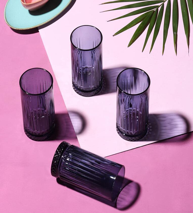 (Set of 4) Elysia 450 ml Glass Long Drink Glass Blue