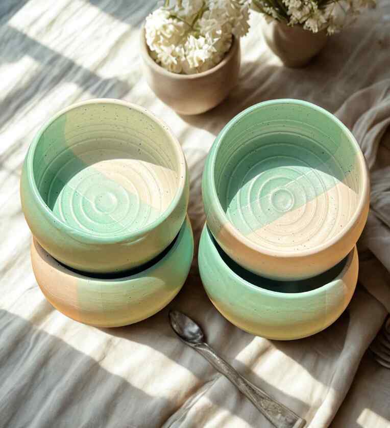(Set of 4) Handcrafted Dual Tone 150ml Dinner Bowl (Green)