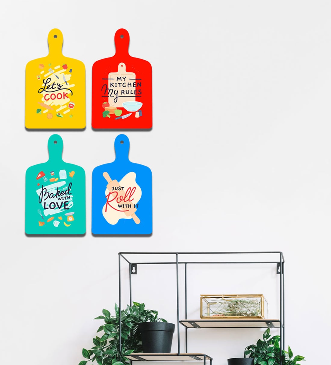 Set of 4 Lets Cook Kitchen Rules Wooden Wall Hanging